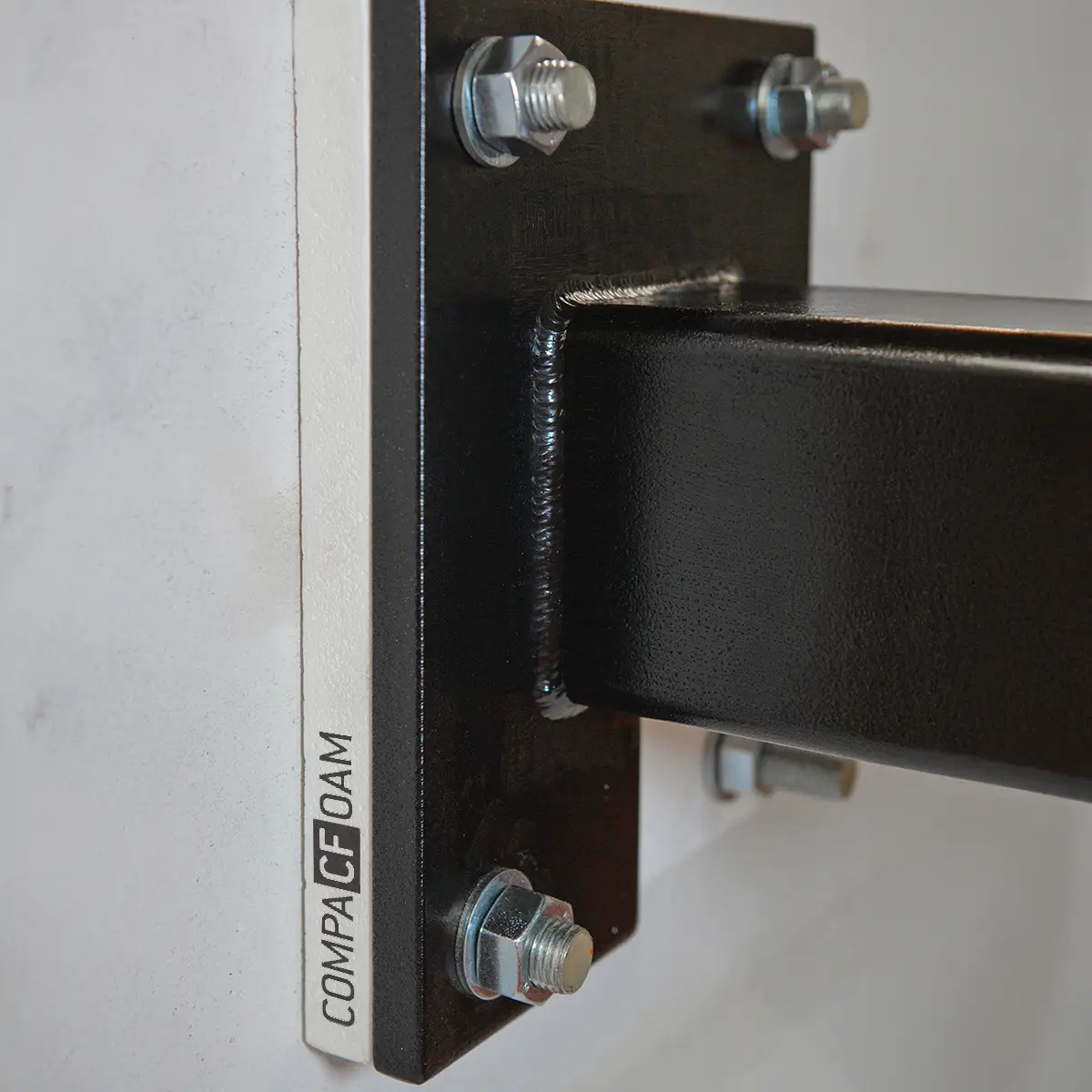 Typische Anwendungen für Lager aus COMPACFOAM finden sich unter Konsolen im Stahlbau oder zur Auflagerung von Betonbauteilen. Das duktile Materialverhalten gleicht Unebenheiten im Untergrund weitgehend aus.