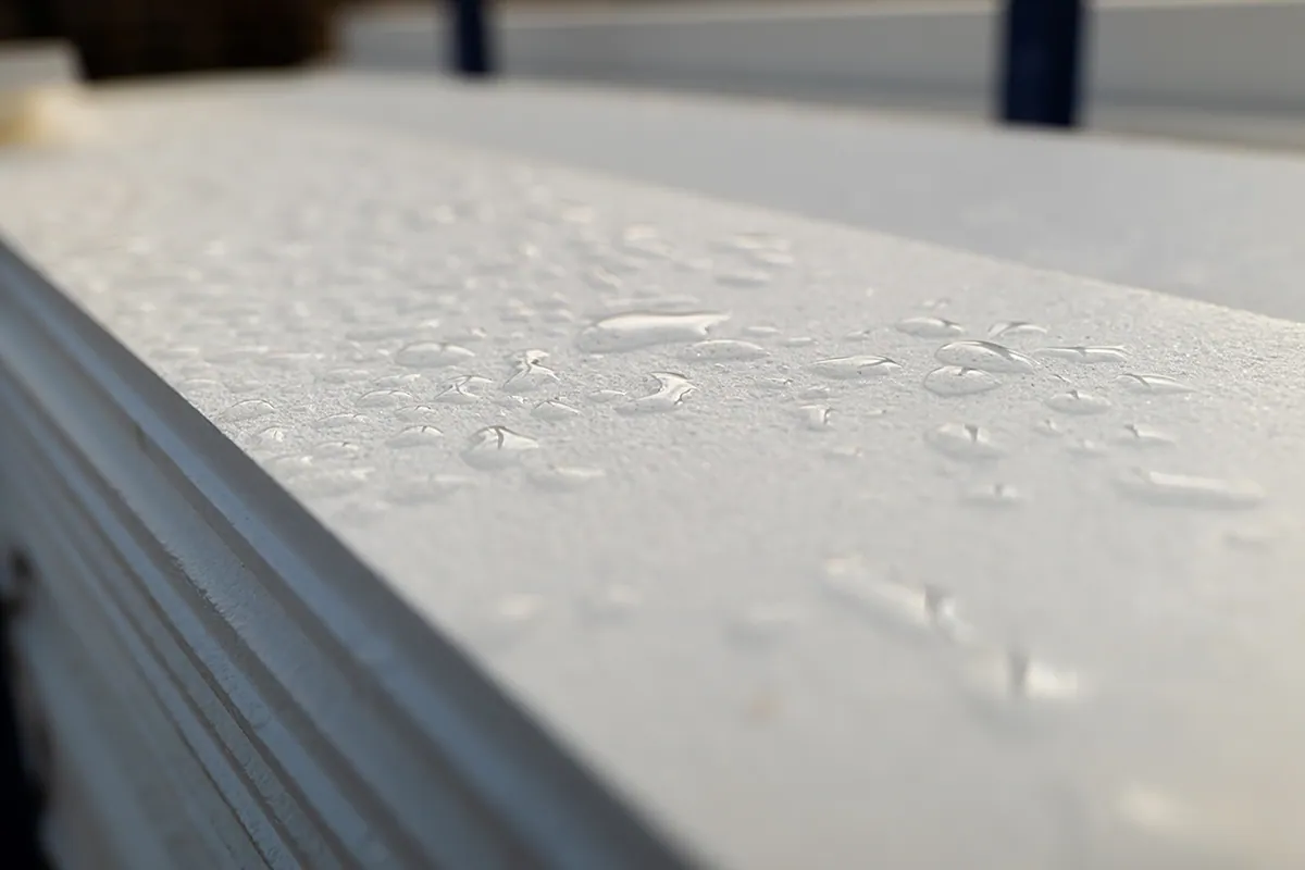 Der Konstruktionskern ist unempfindlich gegenüber Feuchtigkeit, Temperatur und Frost, dennoch diffusionsoffen und atmungsaktiv. Das ist besonders wichtig beim Kontakt mit Holz. Eventuell eingetretene Feuchtigkeit trocknet schadensfrei aus. Ausgezeichnete Haltbarkeit in feuchter und salzhaltiger Umgebungen. Keine Veränderung der Materialeigenschaften über die Zeit.