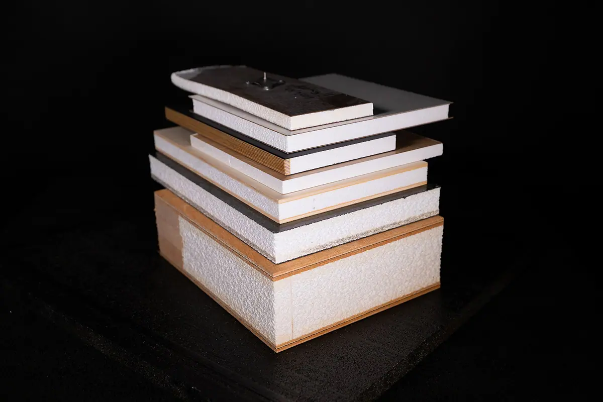 Als Sandwichpaneel mit verschiedenen Beschichtungen verfügbar. Zu diesen gehören Kraftpapier, MDF, Laminat uvm. compatto ist auch als Sandwichkern mit kundenspezifischer Dicke und fertig geschliffen mit Toleranzen von 0,2mm verfügbar.